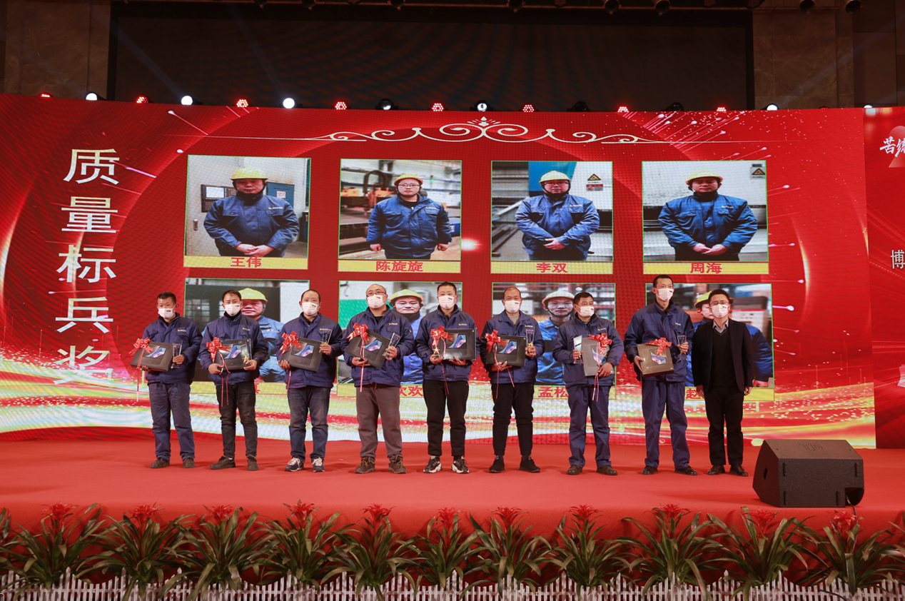 2023年1月17日下午,博匯世通在經(jīng)開區(qū)溫德姆酒店隆重召開二O二二年度“苦練內(nèi)功 逆勢(shì)敢為”先進(jìn)表彰大會(huì),參加表彰會(huì)的與會(huì)人員有:總經(jīng)理付子一、副總經(jīng)理李選舉、王衛(wèi)國(guó)、陶志田、王洪、人力資源總監(jiān)馬書琦、財(cái)務(wù)總監(jiān)李梅,全體中層管理干部、工段長(zhǎng)、獲得榮譽(yù)稱號(hào)的所有先進(jìn)員工、優(yōu)秀團(tuán)隊(duì)代表、以及AB級(jí)員工們,共計(jì)300人。