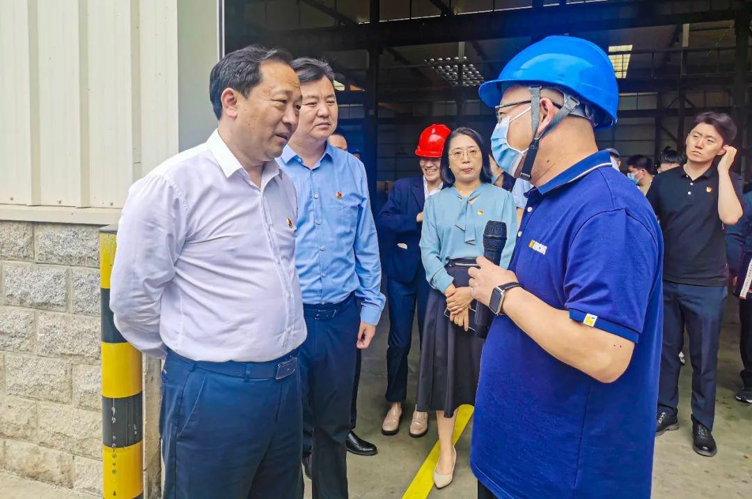 隨后,王書記一行參觀了東環廠區車間生產現場,詳細了解公司配重焊接機器人生產線、水性漆自動噴涂生產線的生產工藝等情況。查看了公司在黨建方面所做出的成效,詳細了解黨的組織工作在助力公司發展大局中的作用發揮情況,對公司下大力在廠區內外積極營造黨建氛圍、加強黨員學習教育、推動公司黨建工作落地開花表示肯定。