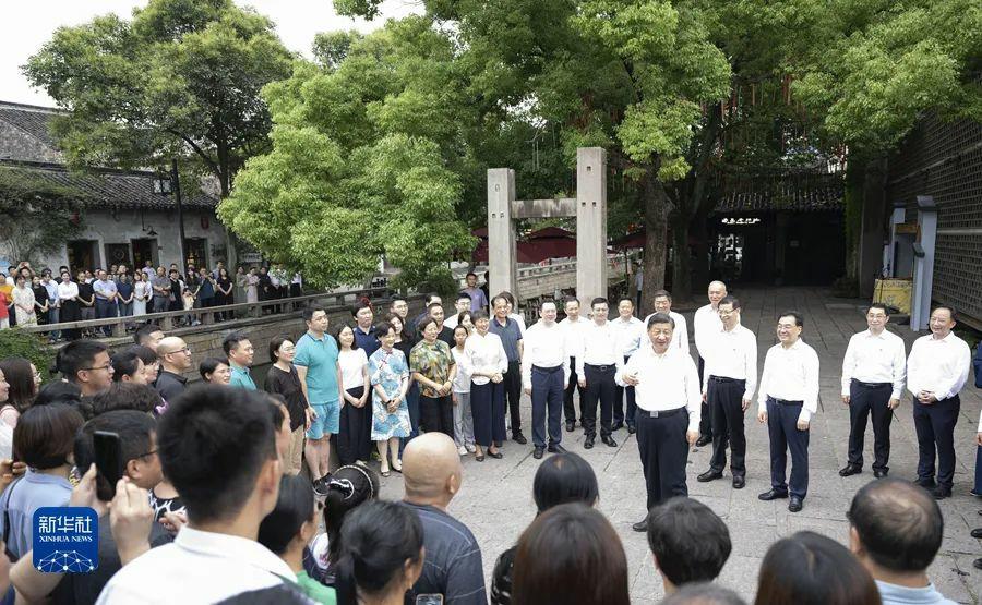街邊小廣場上,曲樂悠揚,當地居民和游客正在欣賞蘇州評彈表演。看到總書記來了,大家紛紛向總書記問好。習近平饒有興致地同大家一起觀看表演,他對大家說,昨天我看了工業園區,今天又看了傳統文化街區,到處都是古跡、名勝、文化,生活在這里很有福氣。蘇州在傳統與現代的結合上做得很好,不僅有歷史文化傳承,而且有高科技創新和高質量發展,代表未來的發展方向。他對當地負責同志講,平江歷史文化街區是傳承弘揚中華優秀傳統文化、加強社會主義精神文明建設的寶貴財富,要保護好、挖掘好、運用好,不僅要在物質形式上傳承好,更要在心里傳承好。