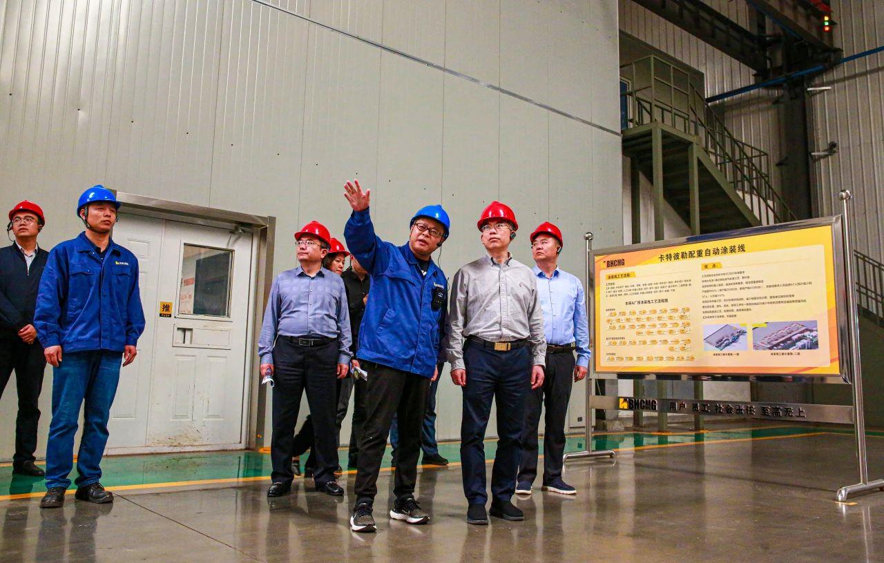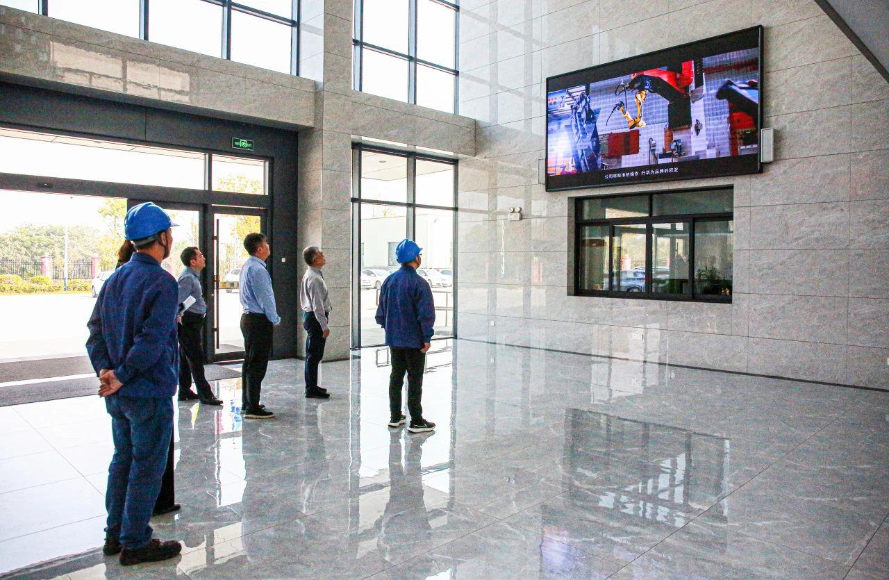 隨后,梁主任一行參觀了東環廠區車間生產現場,詳細了解公司配重焊接機器人生產線、水性漆自動噴涂生產線的生產工藝等情況,對公司自動噴涂線的生產工藝、自動化智能化水平表示高度贊許,期待公司后續發展和規劃。