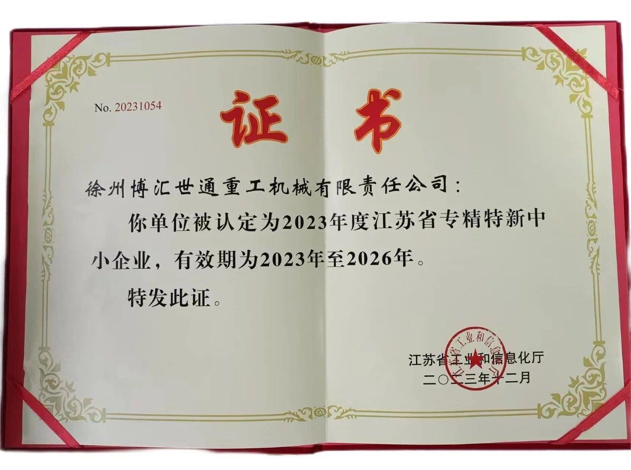 2023年12月14日,江蘇省工業(yè)和信息化廳網(wǎng)站發(fā)布公告,博匯世通成功通過評審,被認定為“2023年度江蘇省專精特新中小企業(yè)”。
