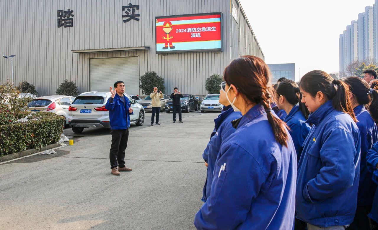 隨著火災警報鈴的響起,在現場安全員的引導下,全體員工迅速反應,立即放下手上的工作,捂住口鼻、低頭彎腰,以最快的速度沖出辦公樓,撤離疏散至緊急集合地點。隨后,安全員向大家講解了如何正確使用逃生面具。