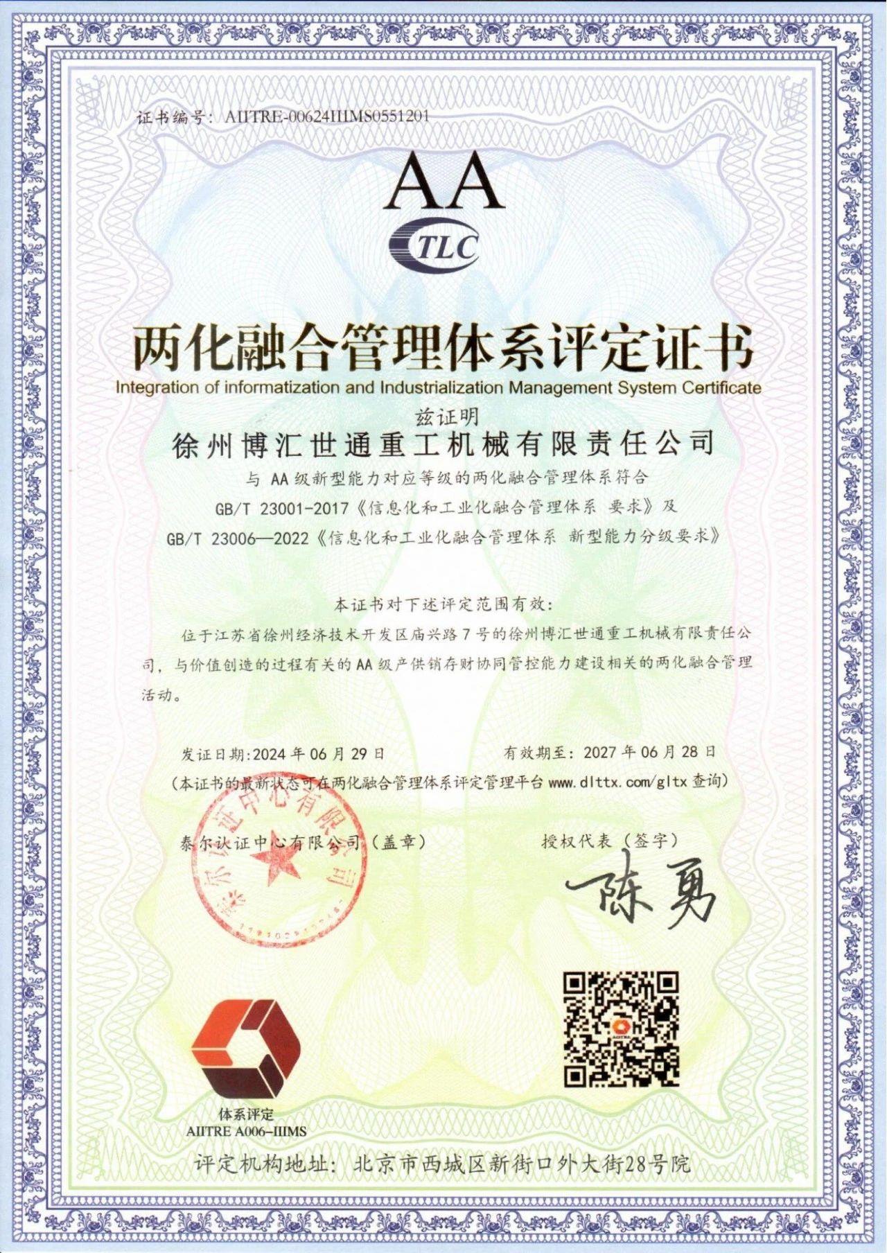 6月29日,博匯世通順利通過兩化融合管理體系AA級評定并取得證書,這標志著公司在推進工業化和信息化融合方面取得了新的突破。