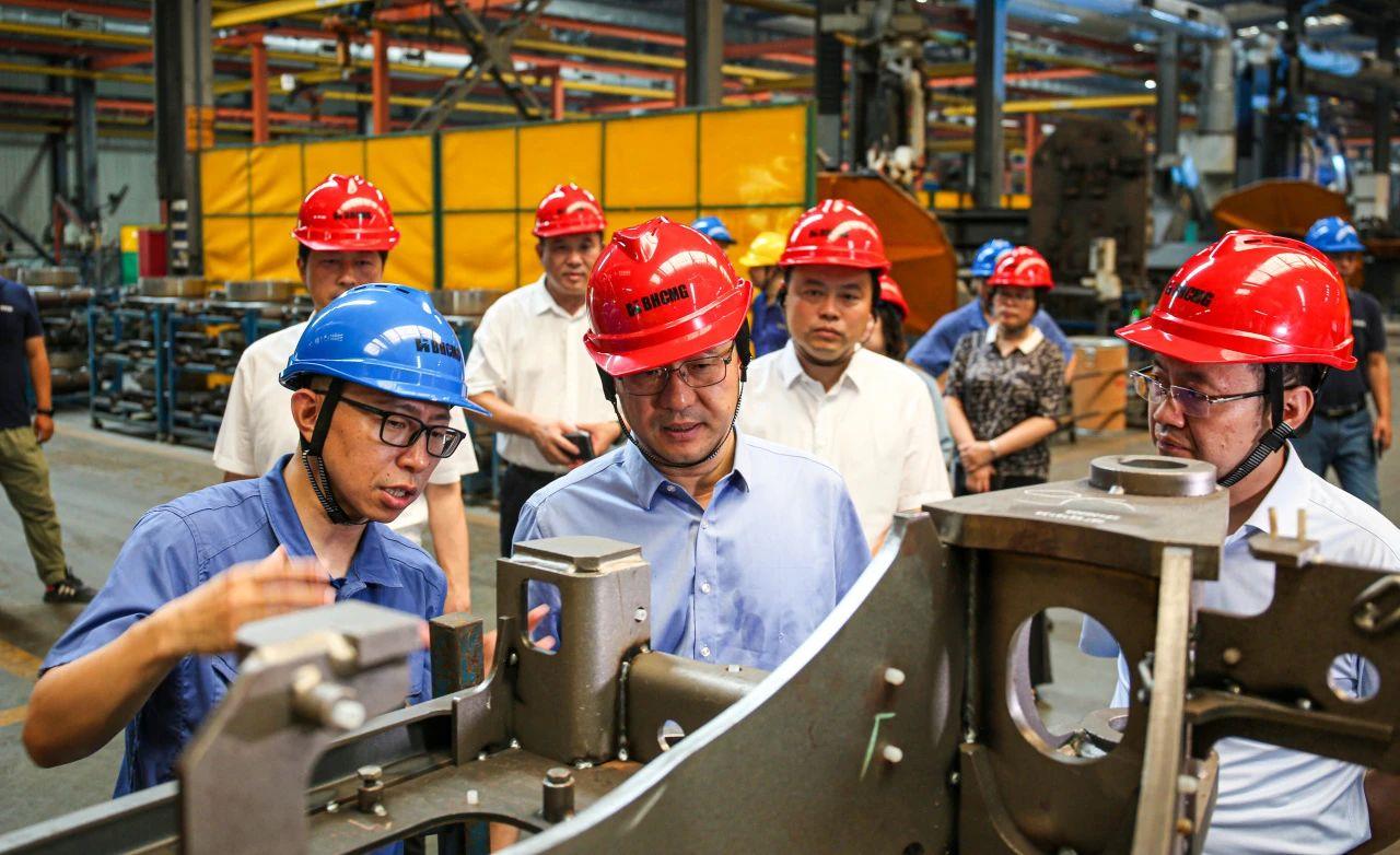隨后,汪市長一行深入東環廠區A、B廠房現場考察,參觀了公司配重焊接機器人生產線、水性漆自動噴涂生產線的生產工藝現場,了解了我司發展歷程、科技創新、戰略布局等情況。汪市長表示,博匯世通在產品生產、企業管理等方面為此次考察提供了寶貴的方法,為下步淮北市深化企業綜合改革,加快轉型提質提供了可復制、可推廣的經驗。